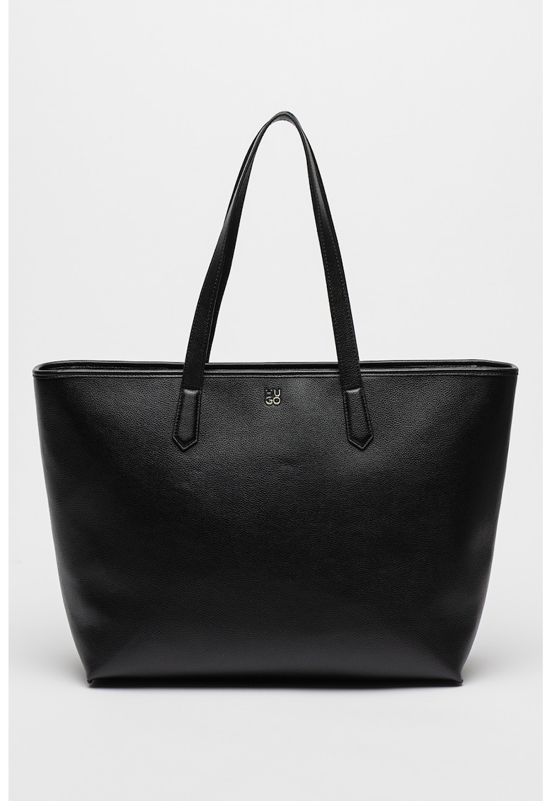 Caracteristici Culoare: negru Material: piele ecologica Model: tote Stil: casual Imprimeu: uni Maner: 2 fixe Buzunare: interior Compartimente: un compartiment Culoare elemente metalice: argintiu Sistem inchidere: fermoar Compozitie Exterior: 60% poliester