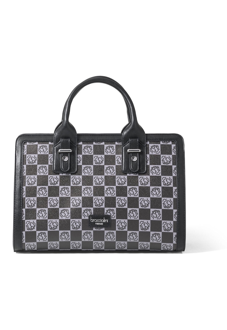Caracteristici Culoare: negru Material: piele ecologica Model: de mana Stil: casual Imprimeu: cu model Maner: 2 fixe Compartimente: 1 principal Culoare elemente metalice: argintiu Sistem inchidere: fermoar Compozitie Exterior: material sintetic Captuseala: material sintetic Dimensiuni Dimensiune (cm): 26 x 36 x 18 cm