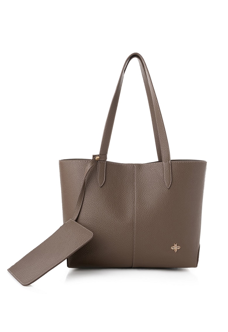 Caracteristici Culoare: maro taupe Material: piele ecologica Model: tote Stil: casual Imprimeu: uni Maner: 2 fixe Compartimente: 1 compatiment principal Culoare elemente metalice: auriu Sistem inchidere: fara inchidere Compozitie Exterior: 100% pvc Dimensiuni Dimensiune (cm): 29x33x13 cm