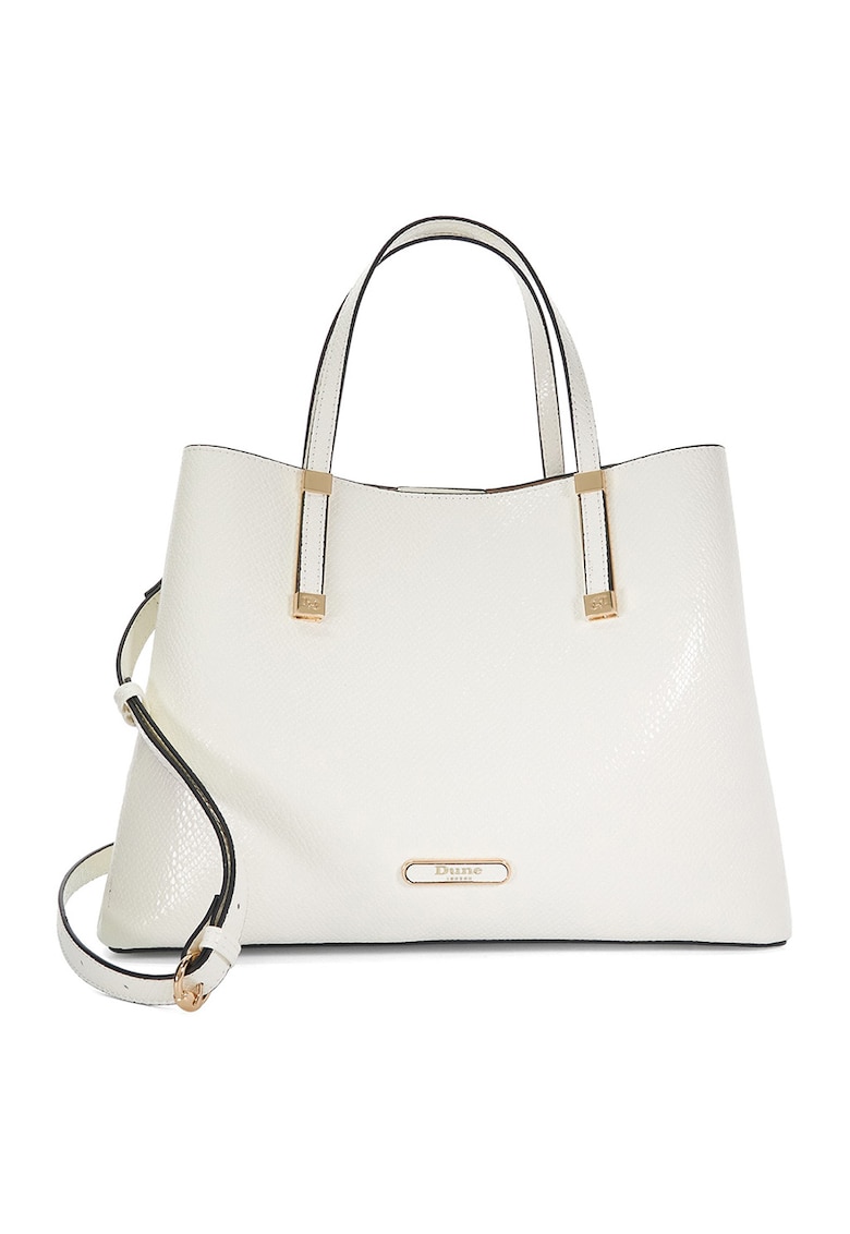 Caracteristici Culoare: alb Material: sintetic Model: tote Stil: casual Imprimeu: uni Maner: doua Barete: detasabile Buzunare: interior Compartimente: 2 Culoare elemente metalice: auriu Sistem inchidere: fermoar Compozitie Exterior: material sintetic Dimensiuni Dimensiune (cm): 25x35x15