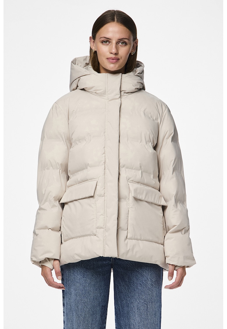 Caracteristici Tip produs: geaca Culoare: crem Imprimeu: uni Material: poliester Croiala: regular fit Guler: inalt Gluga: cu gluga Lungime maneca: maneca lunga Buzunare: 2 buzunare Sistem inchidere: fermoar