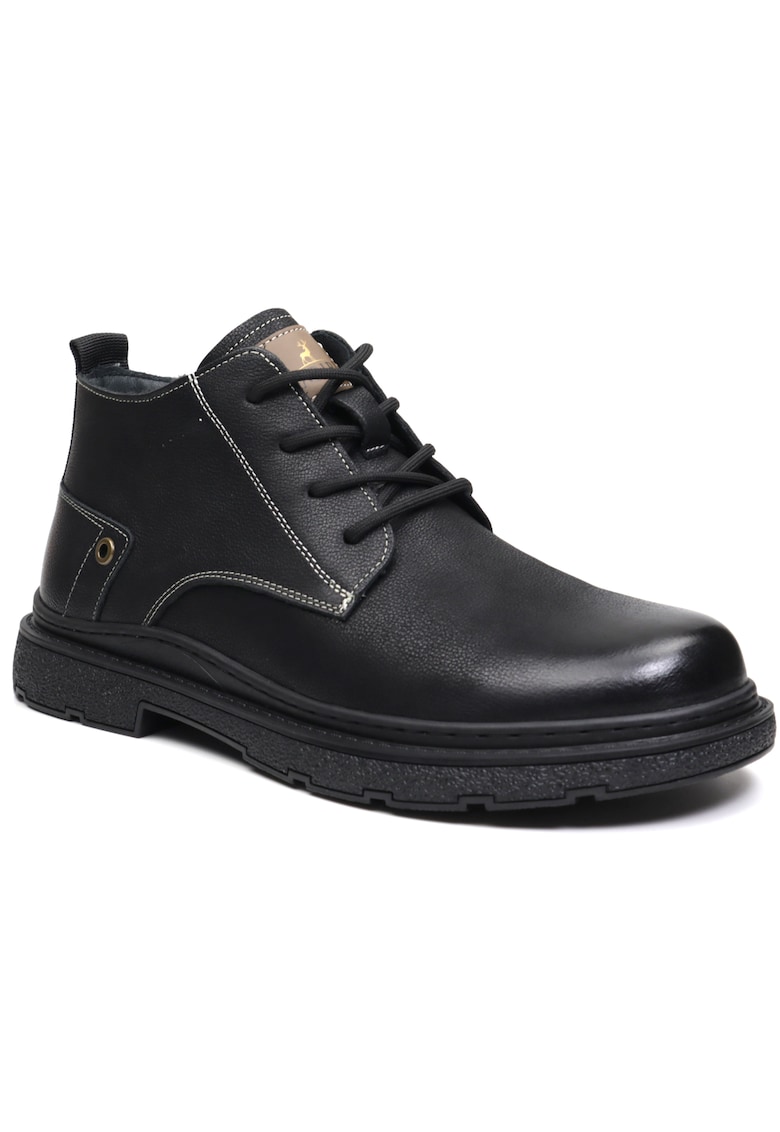 Caracteristici Tip: ghete Culoare: negru Material: piele naturala Imprimeu: uni Stil: casual Varf: rotund Tip talpa: plata Detalii: talpa aderenta Tehnologie: confort Informatii suplimentare: comode Sistem inchidere: siret Compozitie Partea superioara: piele naturala Material interior: textil Material talpa: cauciuc