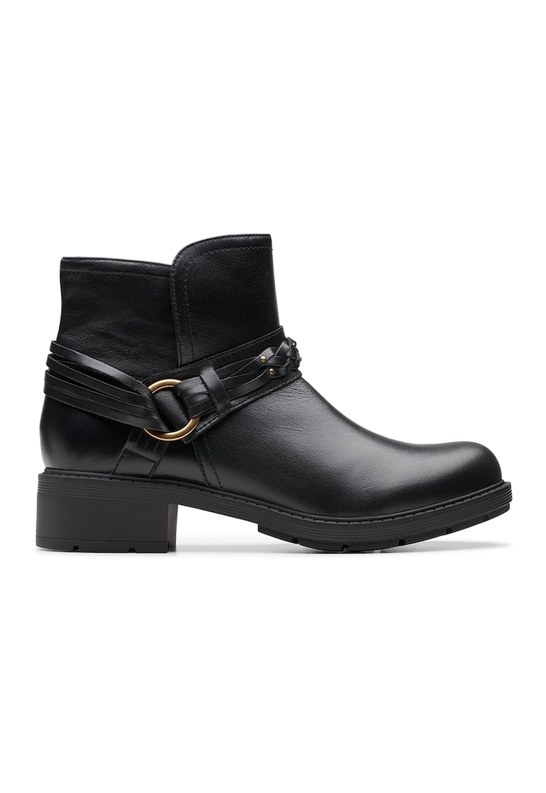 Caracteristici Tip: cu toc Culoare: negru Material: piele naturala Stil: casual Varf: rotund Tip toc: masiv Culoare elemente metalice: auriu