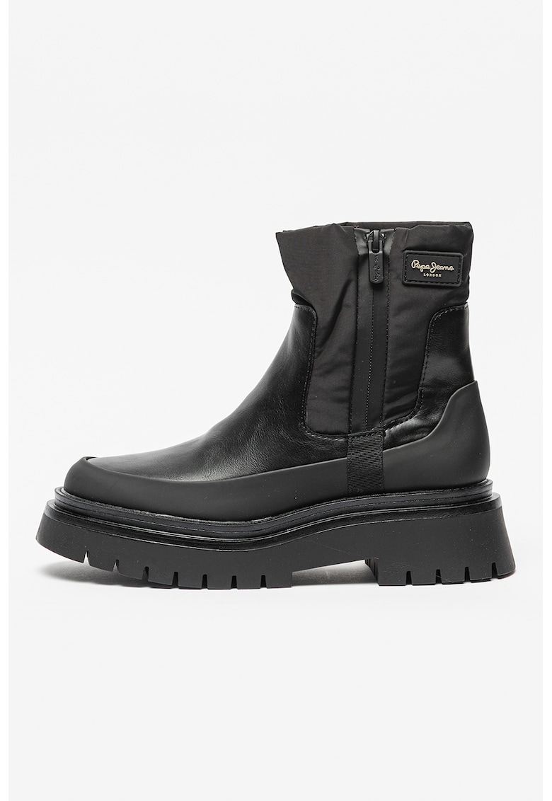 Caracteristici Tip: cu talpa joasa Culoare: negru Material: piele ecologica Imprimeu: uni Stil: casual Varf: rotund Tip talpa: demi-wedge Detalii: aplicatie cu logo Culoare elemente metalice: negru Sistem inchidere: fermoar Compozitie Partea superioara: sintetic Material interior: sintetic Material talpa: alte materiale