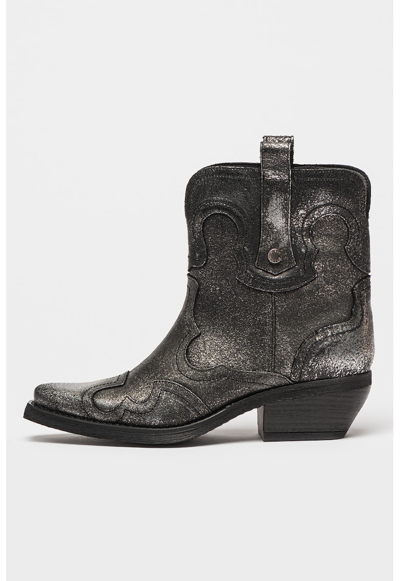 - argintiu Material: piele naturala Imprimeu: uni Stil: casual Varf: ascutit Tip toc: cubanez Detalii: aspect metalizat Sistem inchidere: fara inchidere Compozitie Partea superioara: piele Material interior: alte materiale