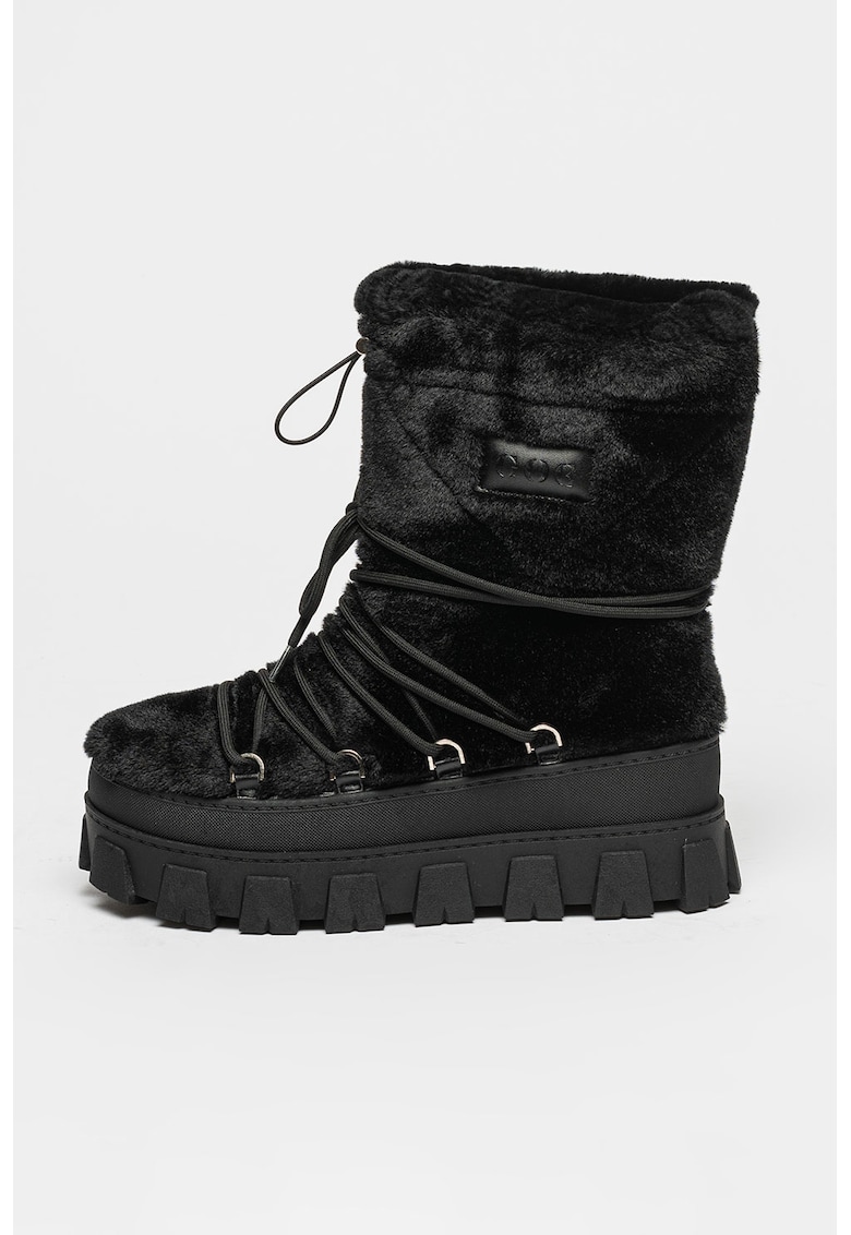 Caracteristici Tip: cu platforma Culoare: negru Material: microfibra Imprimeu: uni Stil: casual Varf: rotund Tip talpa: flatform Culoare elemente metalice: negru Sistem inchidere: fara inchidere Compozitie Partea superioara: sintetic Material interior: blana sintetica Material talpa: alte materiale