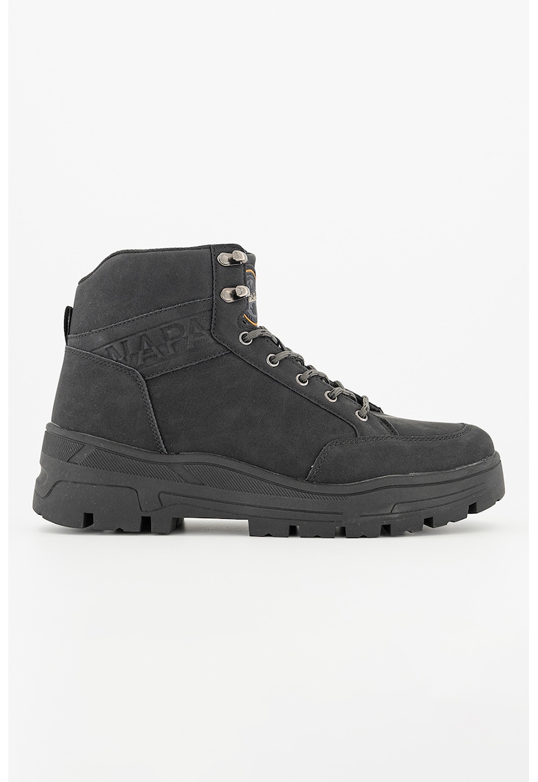 Caracteristici Tip: ghete Culoare: negru Material: sintetic Imprimeu: uni Stil: casual Varf: rotund Tip talpa: plata Detalii: talpa aderenta Sistem inchidere: siret Compozitie Partea superioara: alte materiale Material interior: textil Material talpa: alte materiale