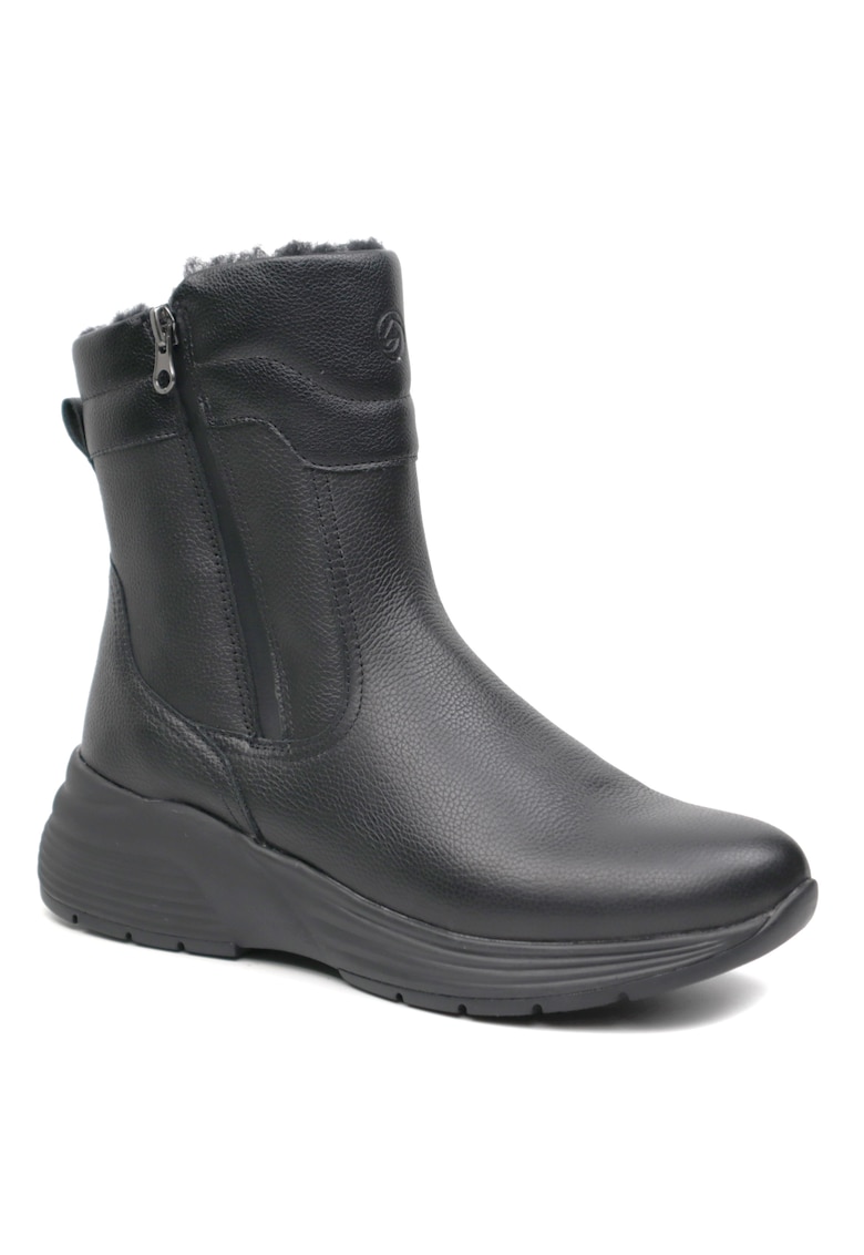 Caracteristici Tip: cu talpa joasa Culoare: negru Material: piele naturala Imprimeu: uni Stil: casual Varf: rotund Tip toc: clasic Tip talpa: plata Detalii: impermeabil Tehnologie: confort Informatii suplimentare: confortabile Sistem inchidere: fermoar Compozitie Partea superioara: alte materiale Material interior: textil Material talpa: cauciuc Dimensiuni Platforma spate: nu