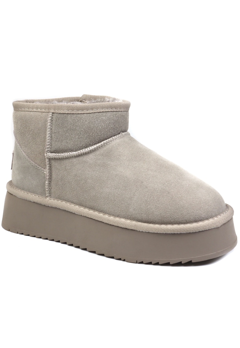 Caracteristici Tip: cu talpa joasa Culoare: bej Material: piele intoarsa Imprimeu: uni Stil: casual Varf: rotund Tip talpa: flatform Detalii: captuseala de blana sintetica Culoare elemente metalice: argintiu Sistem inchidere: fara inchidere Compozitie Material talpa: alte materiale Dimensiuni Inaltime toc: 0 cm