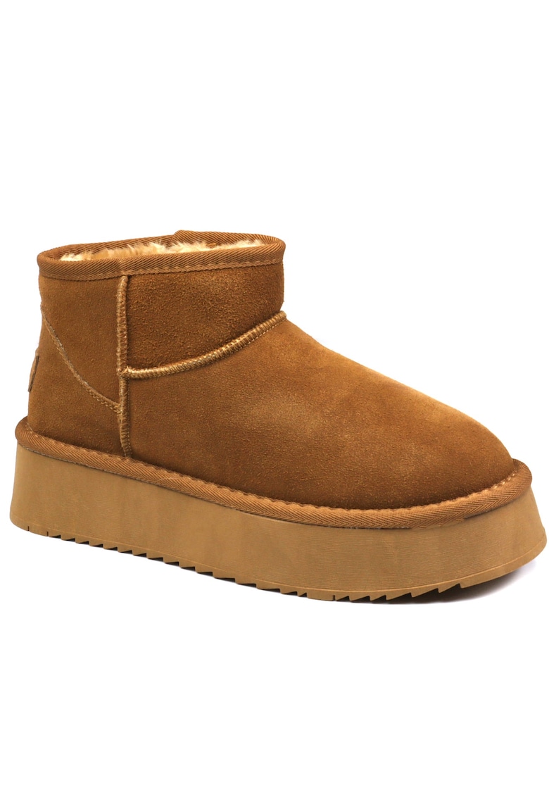 Caracteristici Tip: cu talpa joasa Culoare: camel Material: piele intoarsa Imprimeu: uni Stil: casual Varf: rotund Tip talpa: flatform Detalii: captuseala de blana sintetica Culoare elemente metalice: argintiu Sistem inchidere: fara inchidere Compozitie Material talpa: alte materiale Dimensiuni Inaltime toc: 0 cm