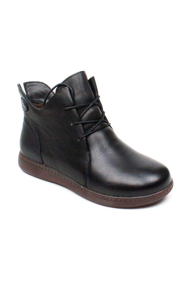Caracteristici Tip: cu talpa joasa Culoare: negru Material: piele naturala Imprimeu: uni Stil: casual Varf: rotund Tip toc: clasic Tip talpa: plata Detalii: material usor Tehnologie: warm tech memory foam Informatii suplimentare: brant antisoc Sistem inchidere: fermoar Compozitie Partea superioara: alte materiale Material interior: piele si textil Material talpa: piele si material textil Dimensiuni Platforma fata: nu Platforma spate: nu