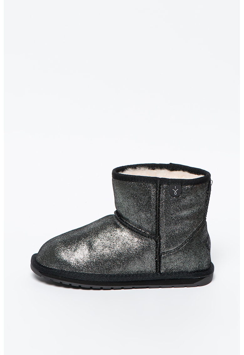 - argintiu Material: piele naturala Stil: casual Lungime: glezna Sistem inchidere: fara inchidere Tip talpa: plata Detalii: aspect metalizat Detalii material Partea superioara: piele Material interior: lana merinos Material talpa: alte materiale