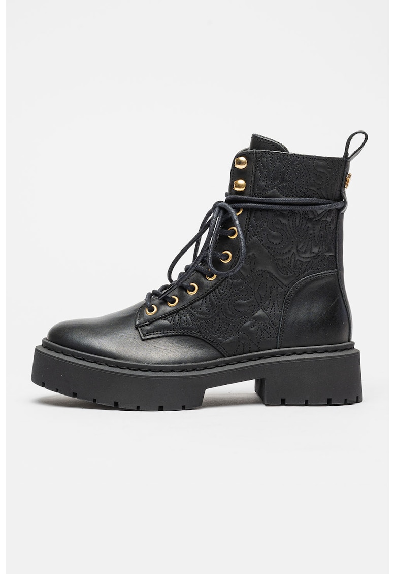 Caracteristici Tip: cu toc Culoare: negru Material: piele naturala Imprimeu: uni Stil: casual Varf: rotund Tip toc: masiv Detalii: detalii brodate Culoare elemente metalice: auriu Sistem inchidere: siret