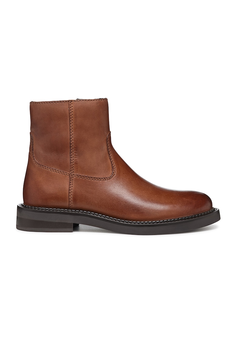 Caracteristici Tip: cu toc Culoare: maro scortisoara Material: piele naturala Stil: casual Varf: rotund Tip toc: masiv Culoare elemente metalice: argintiu Sistem inchidere: fermoar Compozitie Partea superioara: piele Material interior: alte materiale Material talpa: alte materiale
