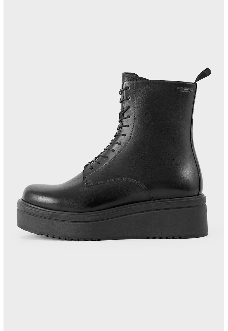 Caracteristici Tip: cu platforma Culoare: negru Material: piele naturala Imprimeu: uni Stil: casual Varf: rotund Tip talpa: flatform Culoare elemente metalice: negru Sistem inchidere: fermoar Compozitie Partea superioara: piele Material interior: piele naturala