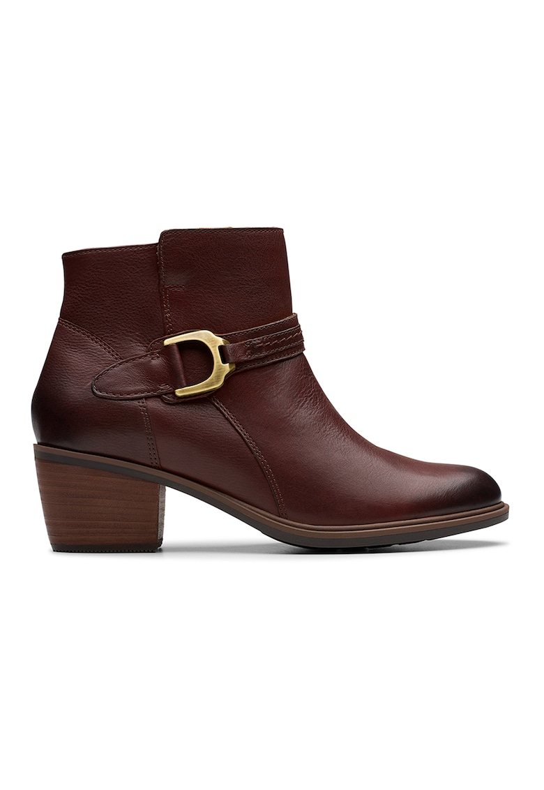 Caracteristici Tip: cu toc Culoare: maro cognac Material: piele naturala Stil: casual Varf: rotund Tip toc: masiv Culoare elemente metalice: bronz Sistem inchidere: fermoar Compozitie Partea superioara: piele Material interior: textil Material talpa: alte materiale Dimensiuni Inaltime toc: 5.5 cm