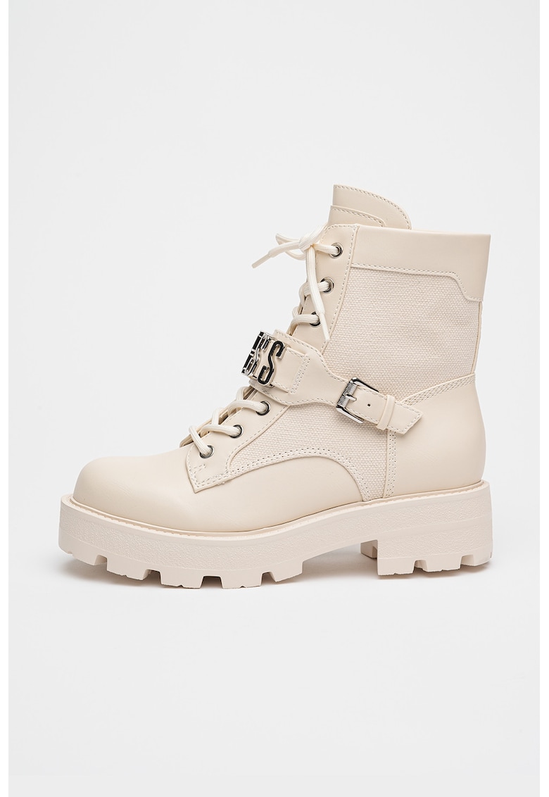 Caracteristici Tip: cu toc Culoare: alb fildes Material: piele ecologica Stil: casual Varf: rotund Tip toc: masiv Culoare elemente metalice: argintiu Sistem inchidere: fermoar Compozitie Partea superioara: alte materiale Material interior: alte materiale