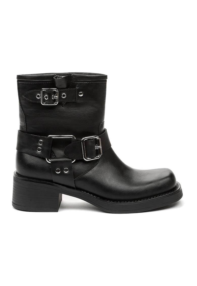 Caracteristici Tip: cu toc Culoare: negru Material: piele ecologica Imprimeu: uni Stil: casual Varf: patrat Tip toc: masiv Detalii: catarame decorative Culoare elemente metalice: argintiu Sistem inchidere: fermoar Compozitie Partea superioara: alte materiale Material interior: textil Material talpa: alte materiale
