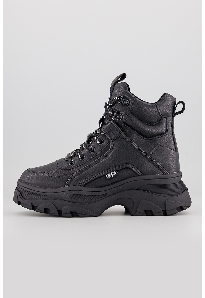 Caracteristici Tip: cu toc Culoare: negru Material: piele ecologica Imprimeu: uni Stil: casual Varf: rotund Tip toc: masiv Culoare elemente metalice: negru Sistem inchidere: siret Compozitie Partea superioara: piele ecologica Material interior: textil Material talpa: alte materiale