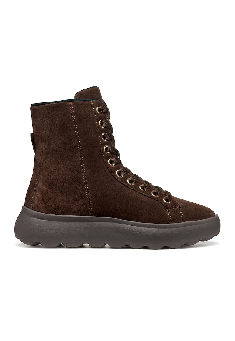 Caracteristici Tip: cu talpa joasa Culoare: maro inchis Material: piele intoarsa Imprimeu: uni Stil: casual Varf: rotund Tip talpa: plata Tehnologie: geox respira® Sistem inchidere: fermoar Compozitie Partea superioara: piele intoarsa Material interior: piele naturala