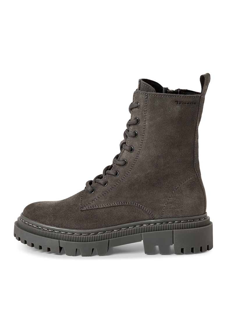Caracteristici Tip: cu toc Culoare: gri inchis Material: piele intoarsa Imprimeu: uni Stil: casual Varf: rotund Tip toc: masiv Culoare elemente metalice: gri Sistem inchidere: fermoar Compozitie Partea superioara: piele intoarsa Material interior: textil Material talpa: alte materiale Dimensiuni Inaltime toc: 4 cm