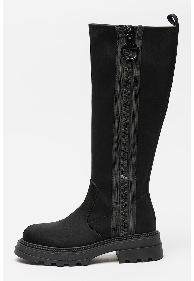 Caracteristici Tip: cu toc Culoare: negru Material: textil Imprimeu: uni Stil: casual Varf: rotund Tip toc: masiv Sistem inchidere: fermoar Compozitie Partea superioara: textil Material interior: alte materiale