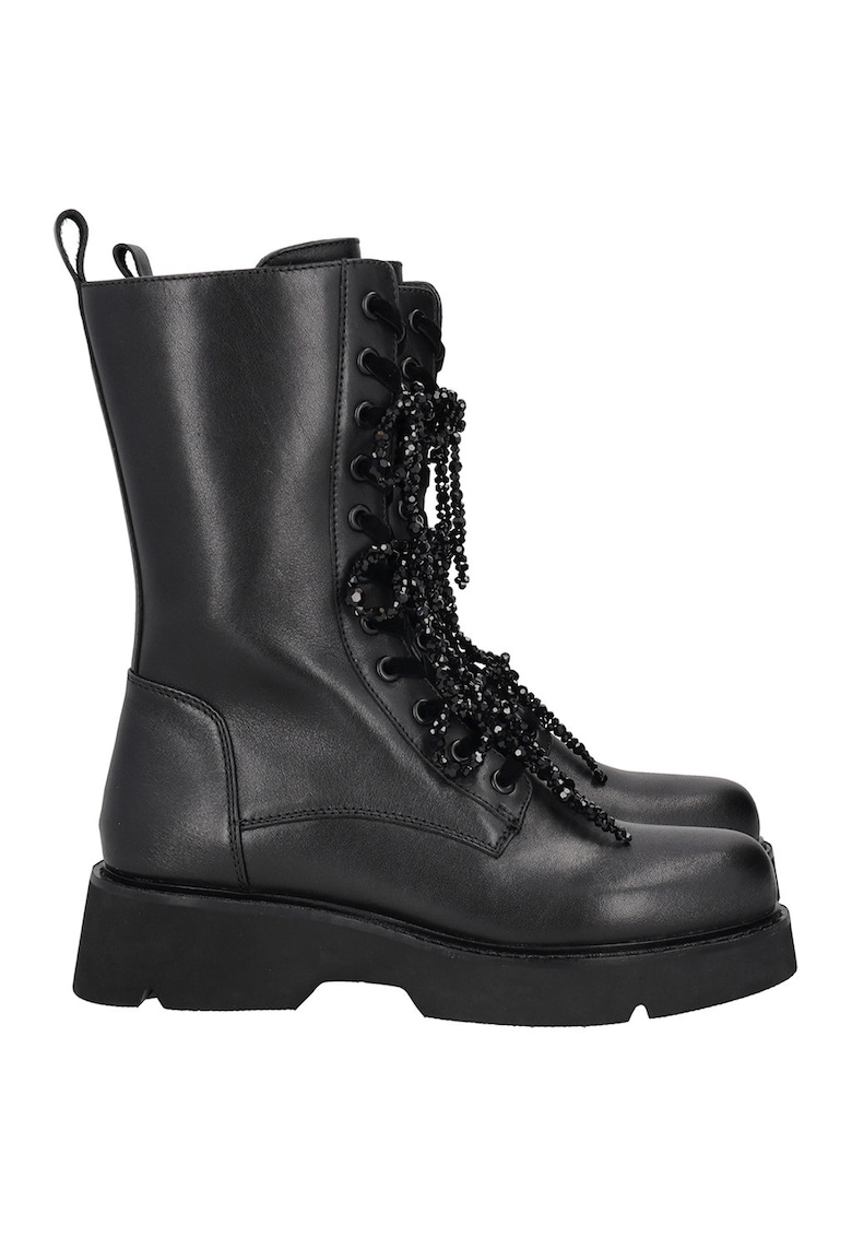 Caracteristici Tip: cu toc Culoare: negru Material: piele naturala Stil: casual Varf: rotund Tip toc: masiv Culoare elemente metalice: negru Sistem inchidere: siret