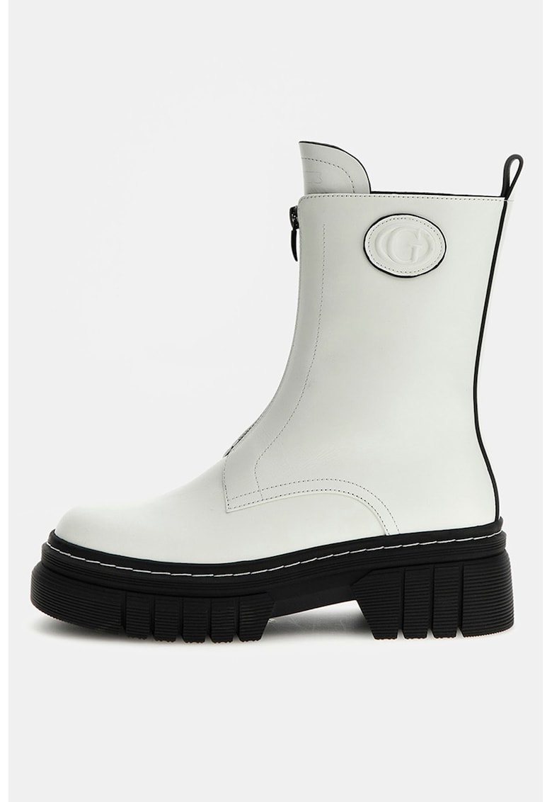 Caracteristici Tip: cu toc Culoare: alb Material: piele naturala Imprimeu: uni Stil: casual Varf: rotund Tip toc: masiv Culoare elemente metalice: gri metalizat Sistem inchidere: fermoar Compozitie Partea superioara: piele Material interior: alte materiale