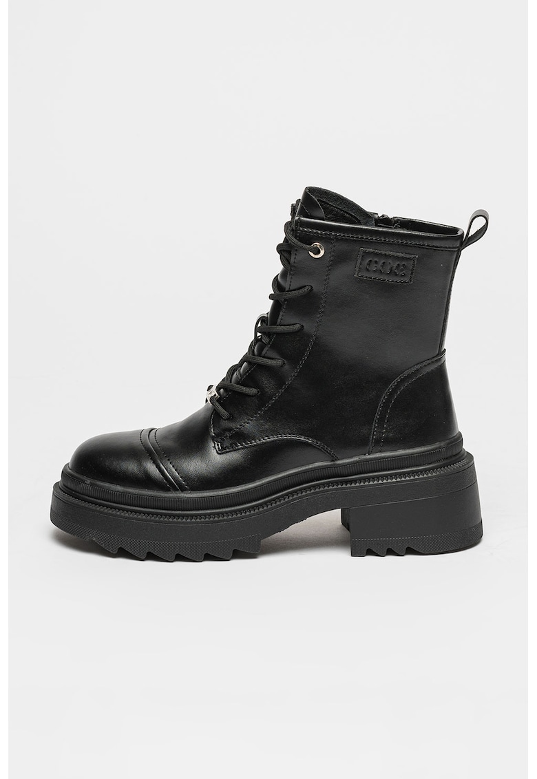 Caracteristici Tip: cu toc Culoare: negru Material: piele naturala Imprimeu: uni Stil: casual Varf: rotund Tip toc: masiv Culoare elemente metalice: negru Sistem inchidere: siret