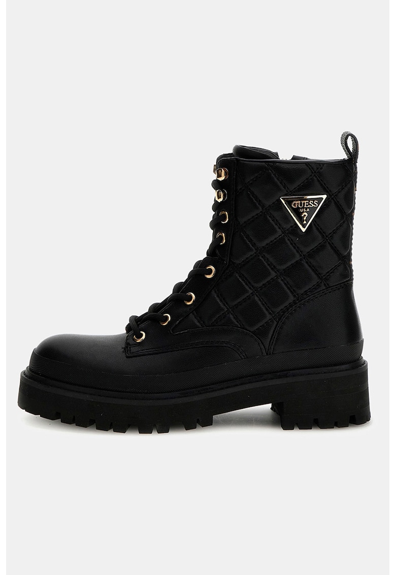 Caracteristici Tip: cu toc Culoare: negru Material: piele ecologica Imprimeu: uni Stil: casual Varf: rotund Tip toc: masiv Culoare elemente metalice: auriu Sistem inchidere: siret