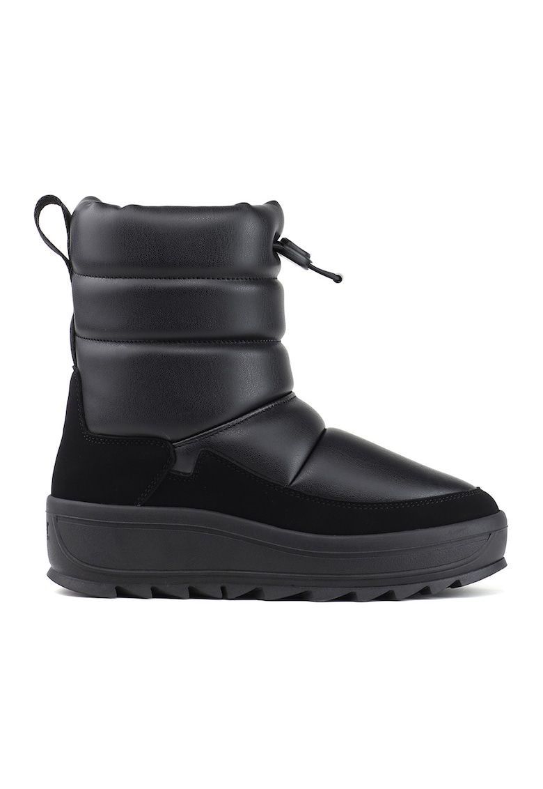 - piele nabuc Imprimeu: logo Stil: casual Varf: rotund Tip talpa: wedge Detalii: rezista la temperaturi pana la -30°c Tehnologie: impermeabil Culoare elemente metalice: negru Sistem inchidere: fermoar Compozitie Partea superioara: piele Material interior: textil Material talpa: alte materiale Dimensiuni Platforma spate: 5 cm