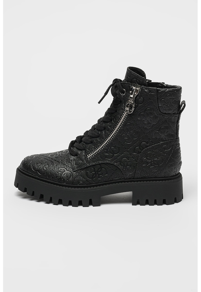 Caracteristici Tip: cu toc Culoare: negru Material: piele naturala Imprimeu: logo Stil: casual Varf: rotund Tip talpa: demi-wedge Culoare elemente metalice: argintiu Sistem inchidere: siret