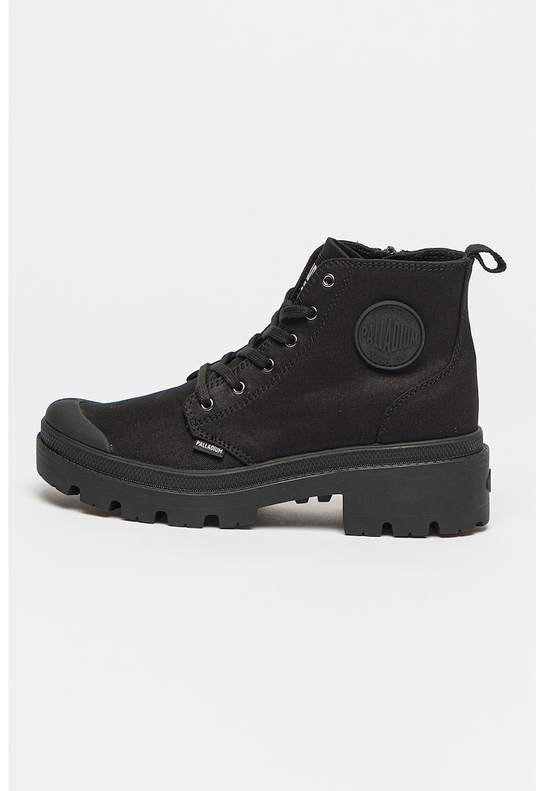 Caracteristici Tip: cu toc Culoare: negru Material: panza Stil: casual Varf: rotund Tip toc: masiv Detalii: sireturi decorative Culoare elemente metalice: negru Sistem inchidere: fermoar Compozitie Partea superioara: textil Material interior: textil Material talpa: alte materiale Dimensiuni Inaltime toc: 3.5 cm