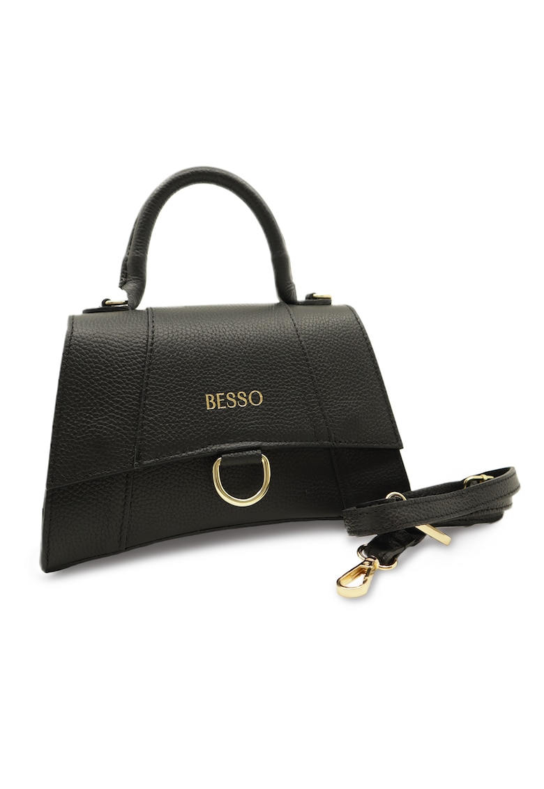 Caracteristici Culoare: negru Material: piele naturala Model: de mana Imprimeu: uni Maner: 1 maner (din piele naturala) Barete: 1 bareta detasabila 100% piele naturala italiana Buzunare: 1 buzunar interior cu inchidere cu fermoar Compartimente: 1 compartiment mare principal Culoare elemente metalice: auriu Sistem inchidere: capse Detalii: 1 compartiment principal Compozitie Exterior: 100 % piele naturala italiana Dimensiuni Dimensiune (cm): 16x24x10
