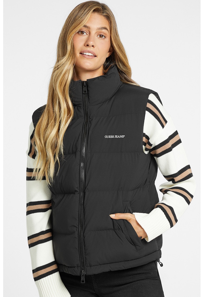 Caracteristici Tip produs: vesta Culoare: negru stins Imprimeu: uni Material: poliester Croiala: regular fit Guler: mediu Gluga: fara gluga Lungime maneca: fara maneca Buzunare: 2 laterale Tehnologie: impermeabil