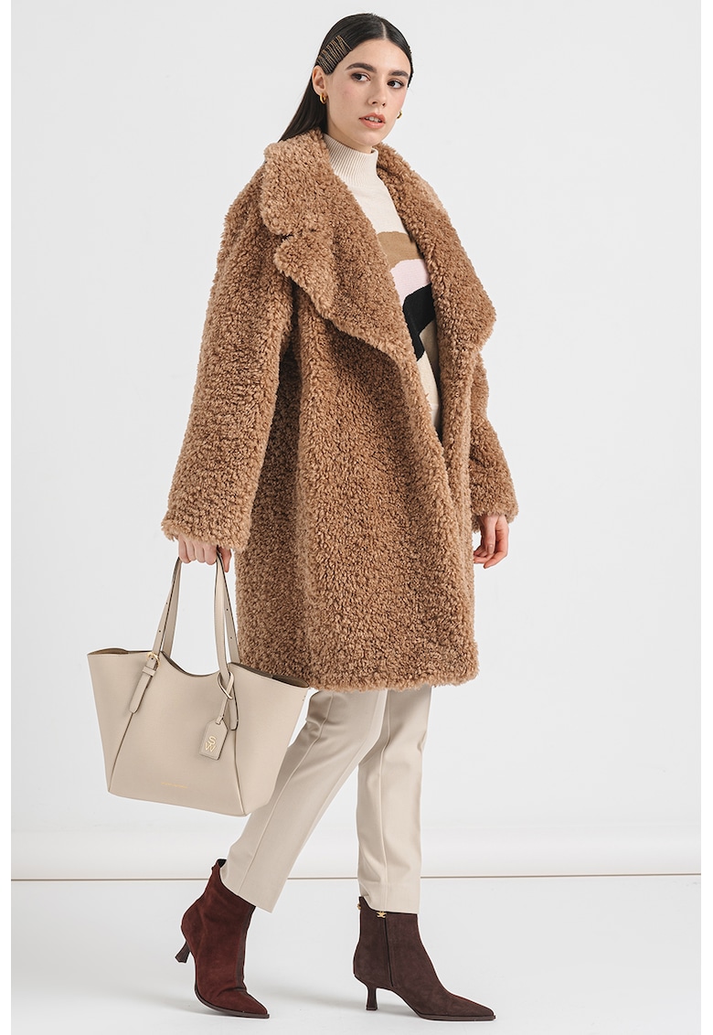 Caracteristici Tip produs: palton Culoare: camel Imprimeu: uni Material: poliester Lungime maneca: maneca lunga Buzunare: 2 Compozitie Exterior: 100% poliester Info model Modelul poarta un produs de marimea S/38 IT. Marimi model: 177 cm inaltime
