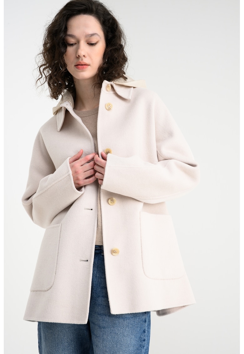 Caracteristici Tip produs: palton Culoare: crem Imprimeu: uni Stil: casual Material: poliester