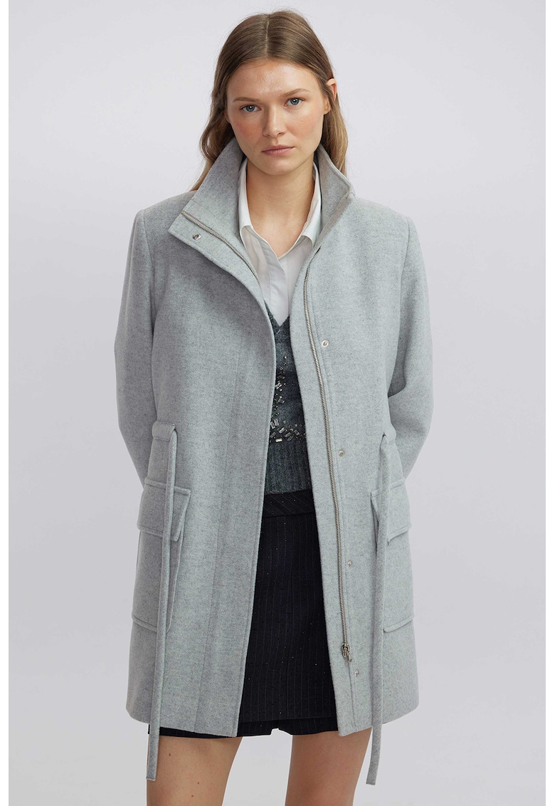 Caracteristici Tip produs: palton Culoare: gri deschis melange Imprimeu: uni Stil: casual Material: sintetic