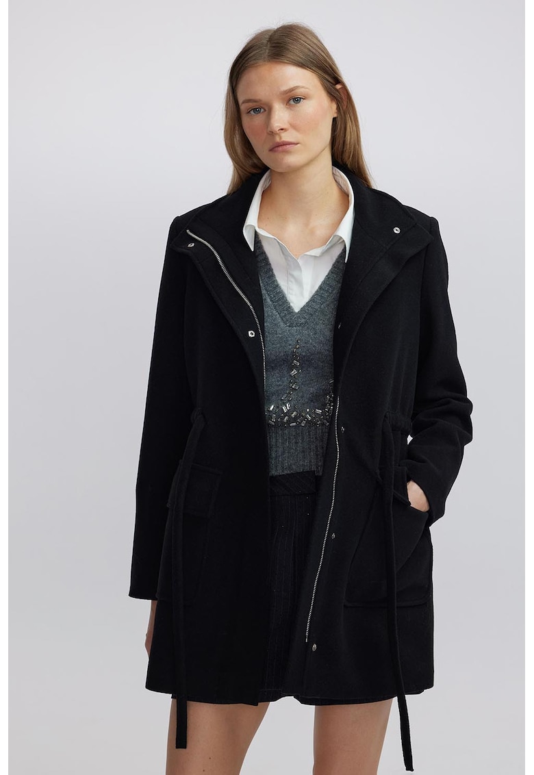 Caracteristici Tip produs: palton Culoare: negru Imprimeu: uni Stil: casual Material: sintetic