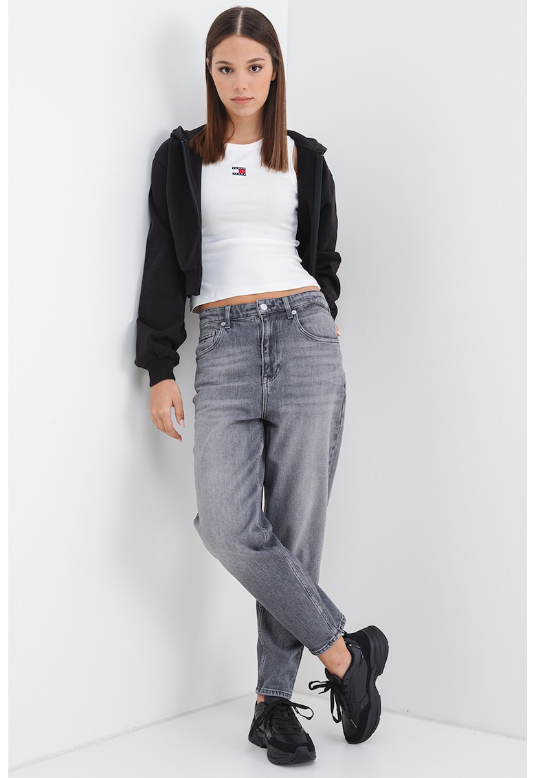 Caracteristici Tip produs: hanorac Culoare: negru Imprimeu: uni Croiala: lejer Sistem inchidere: fermoar Material: bumbac Lungime maneca: maneca lunga Detalii: design crop Compozitie Exterior: 100% bumbac regenerativ Info model Modelul poarta un produs de marimea S. Marimi model: 174 cm inaltime