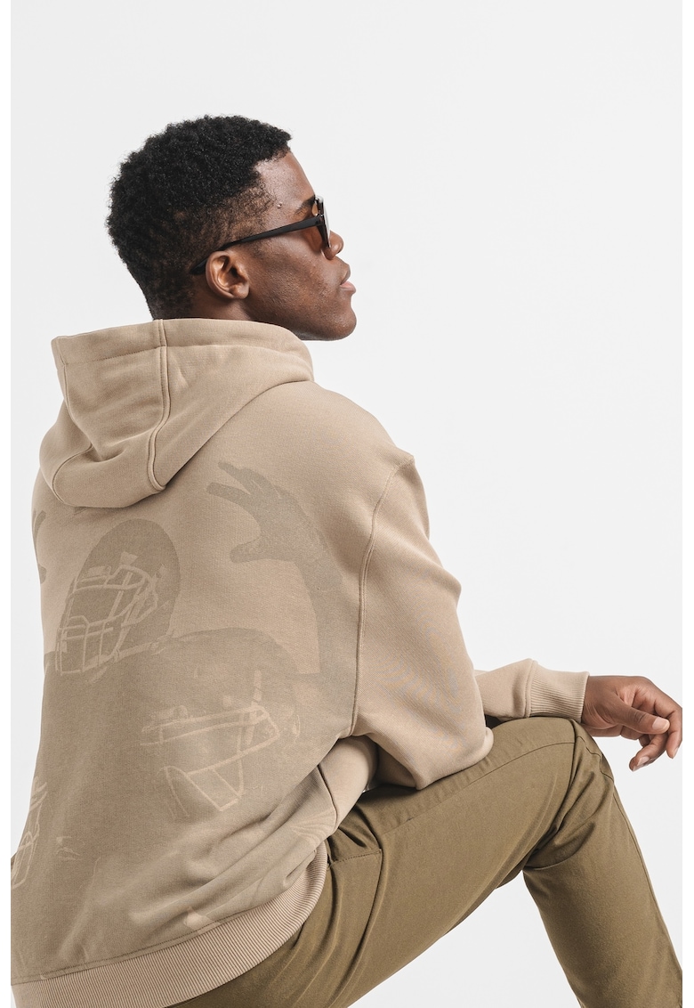 Caracteristici Tip produs: hanorac Culoare: bej Imprimeu: uni Material: bumbac Croiala: regular fit Sistem inchidere: fara inchidere Lungime maneca: maneca lunga Compozitie Exterior: 100% bumbac Info model Modelul poarta un produs de marimea M. Marimi model: 184 cm inaltime