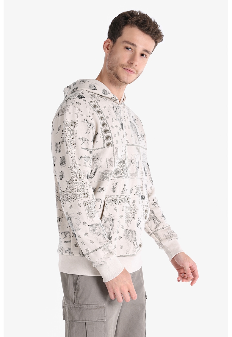 Caracteristici Tip produs: hanorac Culoare: bej Imprimeu: diverse Material: bumbac Croiala: regular fit Sistem inchidere: fara inchidere Buzunare: kangaroo Lungime maneca: maneca lunga Detalii: gluga cu snur pentru ajustare Compozitie Exterior: 53% poliester