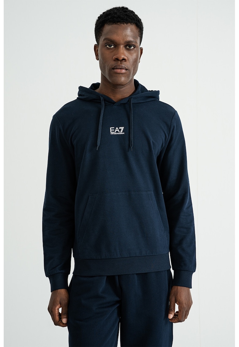 Caracteristici Tip produs: hanorac Culoare: albastru ultramarin Imprimeu: logo Material: bumbac Croiala: regular fit Sistem inchidere: fara inchidere Buzunare: kangaroo Lungime maneca: maneca lunga Compozitie Exterior: 100% bumbac Info model Modelul poarta un produs de marimea M. Marimi model: 184 cm inaltime