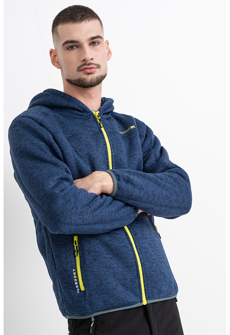 Caracteristici Tip produs: hanorac Culoare: bleumarin Imprimeu: uni Material: poliamida Croiala: regular fit Sistem inchidere: fermoar Buzunare: 2 laterale Lungime maneca: maneca lunga Compozitie Exterior: 100% poliamida Info model Modelul poarta un produs de marimea M. Marimi model: 190 cm inaltime