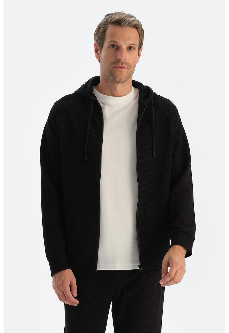 Caracteristici Tip produs: hanorac Culoare: negru Imprimeu: uni Material: poliester