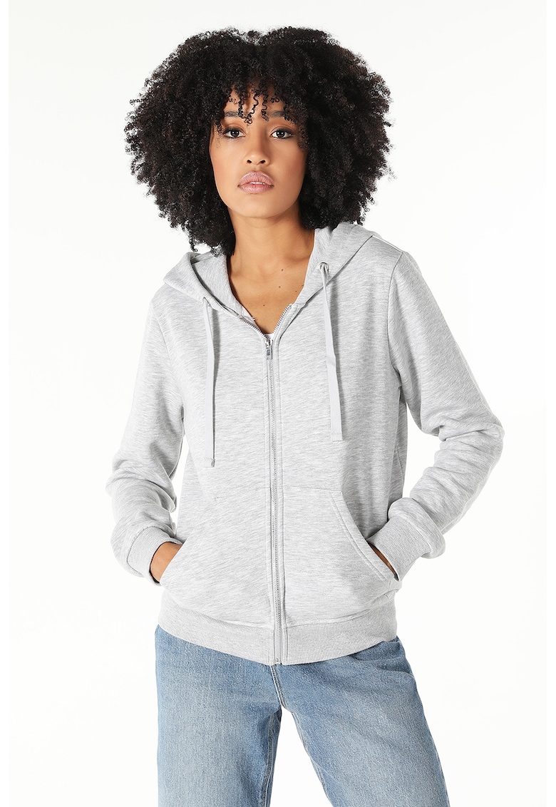 Caracteristici Tip produs: hanorac Culoare: gri melange Imprimeu: uni Croiala: regular fit Sistem inchidere: fermoar Material: poliester