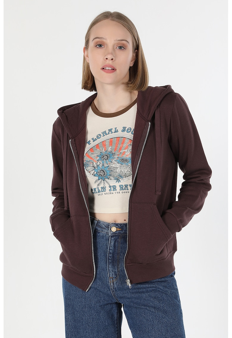 Caracteristici Tip produs: hanorac Culoare: maro inchis Imprimeu: uni Croiala: regular fit Sistem inchidere: fermoar Material: poliester