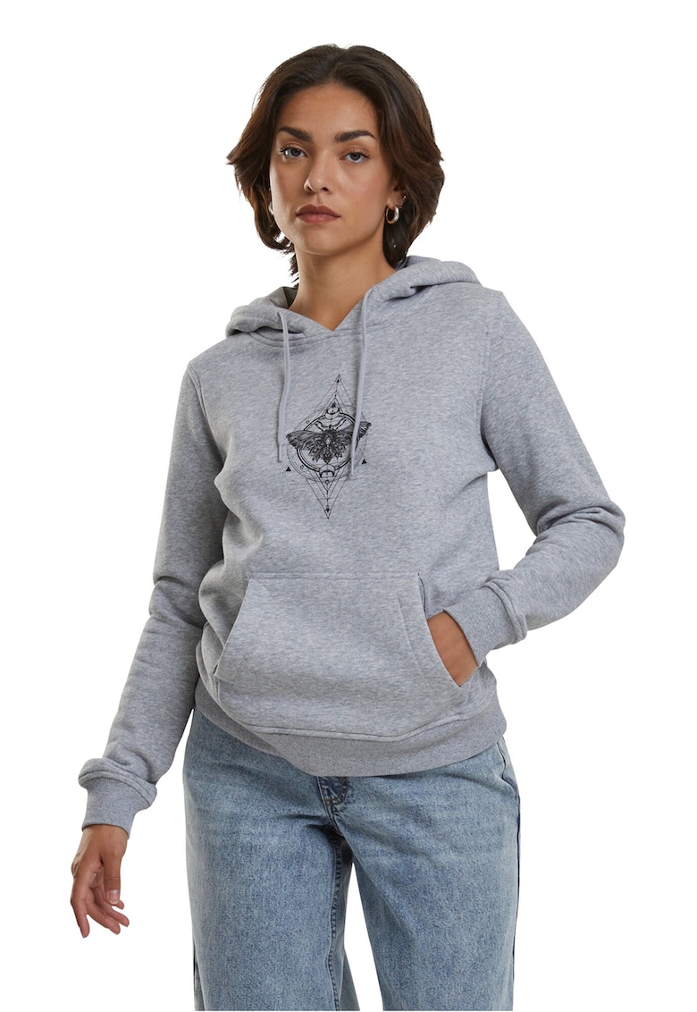 Caracteristici Tip produs: hanorac Culoare: gri melange Imprimeu: grafic Croiala: regular fit Sistem inchidere: fara inchidere Material: poliester