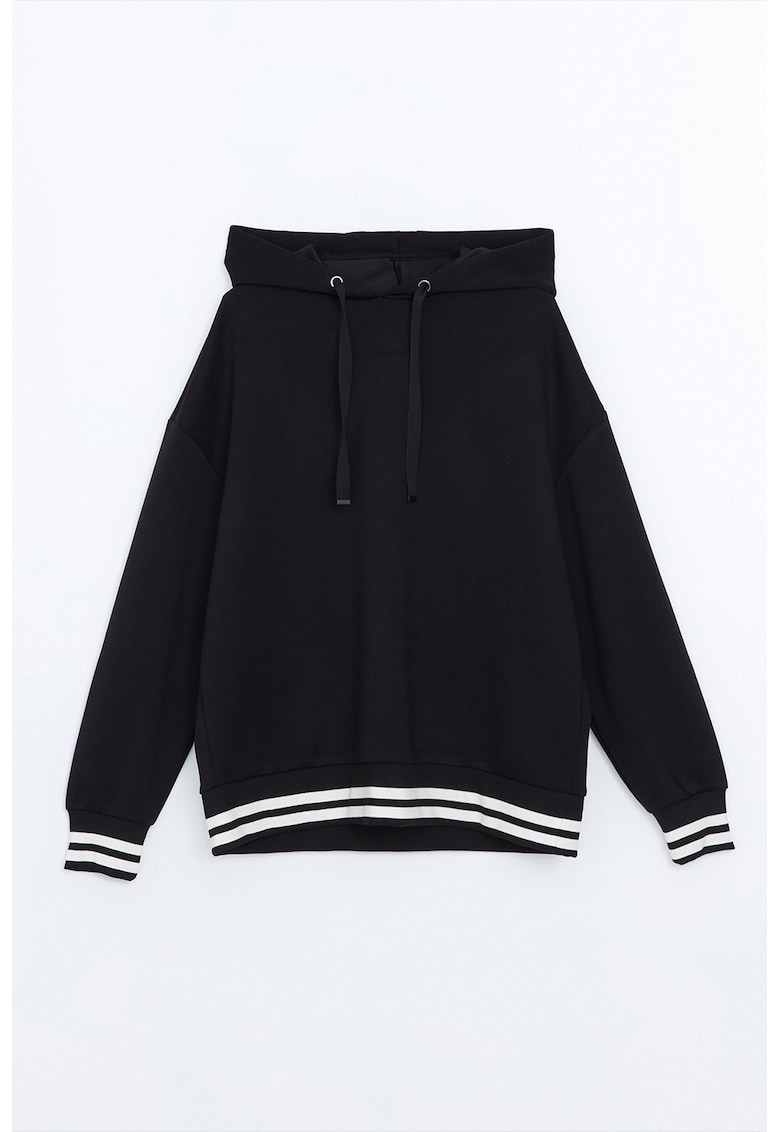 Caracteristici Tip produs: hanorac Culoare: negru Imprimeu: uni Croiala: lejer Sistem inchidere: fara inchidere Material: poliester
