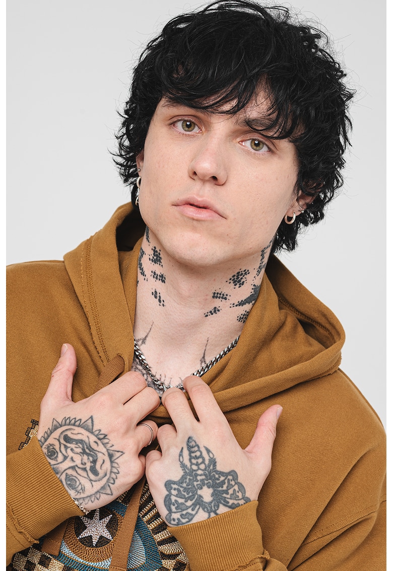 Caracteristici Tip produs: hanorac Culoare: caramel Imprimeu: grafic Material: bumbac Croiala: regular fit Sistem inchidere: fara inchidere Buzunare: 2 laterale Maneci: cazute Lungime maneca: maneca lunga Compozitie Exterior: 100% bumbac Info model Modelul poarta un produs de marimea M. Marimi model: 182 cm inaltime